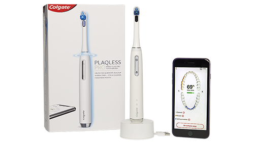 The Colgate Plaqless™ Pro toothbrush is the world’s first toothbrush to incorporate Plaqsense™ technology, which allows you to brush your teeth and know if your teeth are clean through advanced sensors.