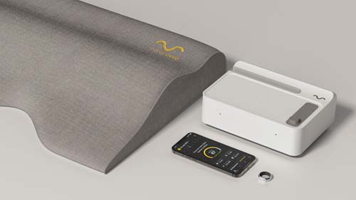 The motion pillow has been combined with the vital ring to enhance the sleep experience for individuals who snore or face breathing discomfort. It not only intelligently detects snoring sounds but also accurately measures oxygen saturation levels. Through the movement of 7 airbags, it dynamically adjusts the positions of the head and back, creating a comfortable breathing environment and reducing snoring. The product has been further enhanced with an increased number of airbags, the vital ring for oxygen saturation measurement, circadian rhythm lighting, and a space-saving charging system, all contributing to improved performance, usability, and adding a touch of sophistication.