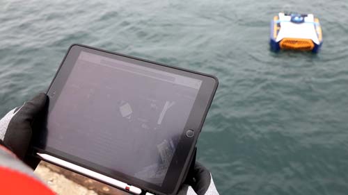 Sheco Ark-M is a water clean-up drone(e.g. robot vacuum cleaner) designed to recover pollutants from bodies of water. It uses a specialized impeller, a blade directing water flow inside, to collect water and contaminants, separating them through reusable mesh-filters. Once collected, pollutants are stored in a cartridge, while purified water is released immediately. The proprietary impeller and filter effectively collect and separate contaminants in both liquid and dust forms, including oil, ship paint, algae, and cargo dust. Its operational range is 50m with a wire and 1km wirelessly. Users can oversee and control the drone via a touch-based GCS screen.